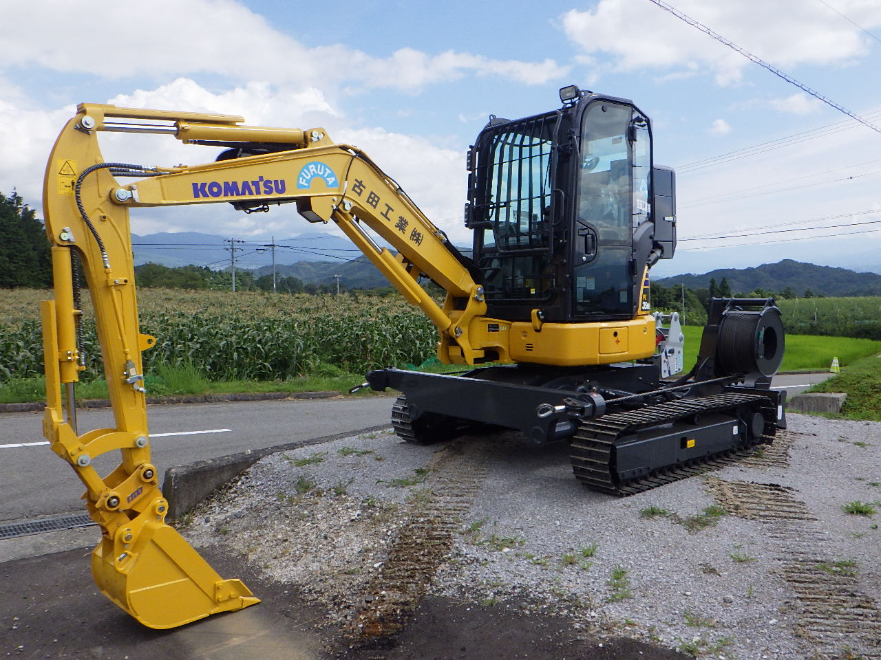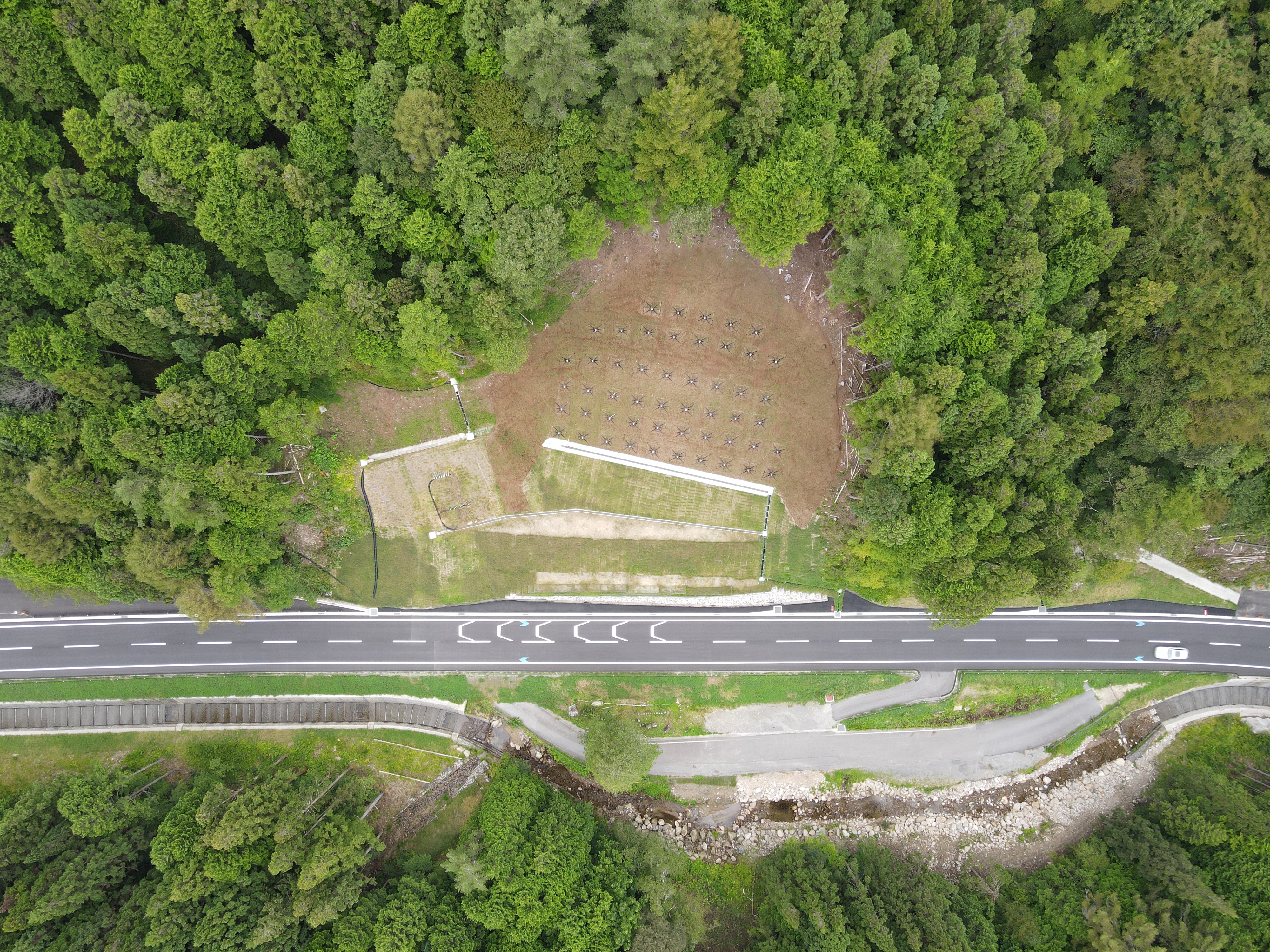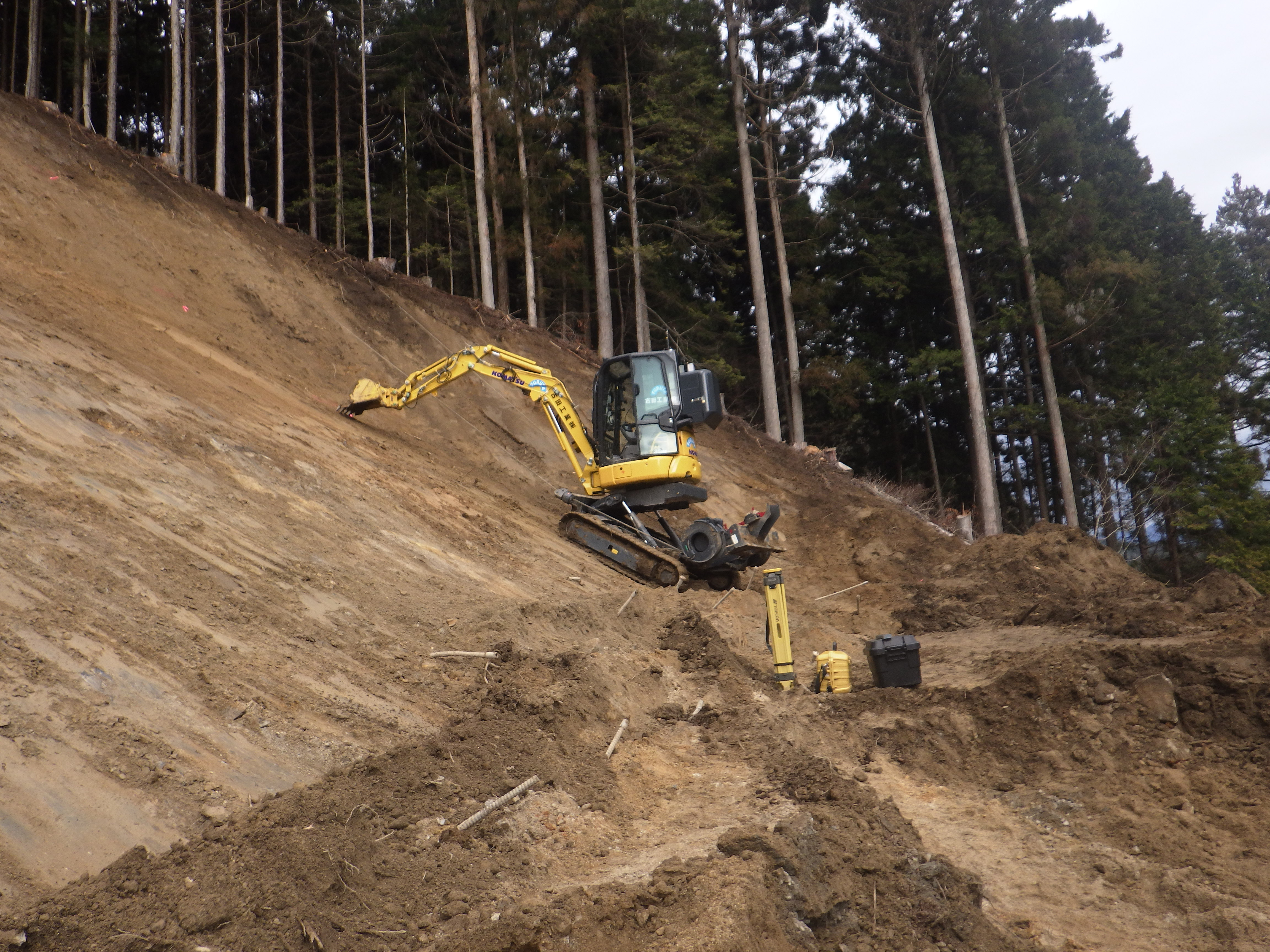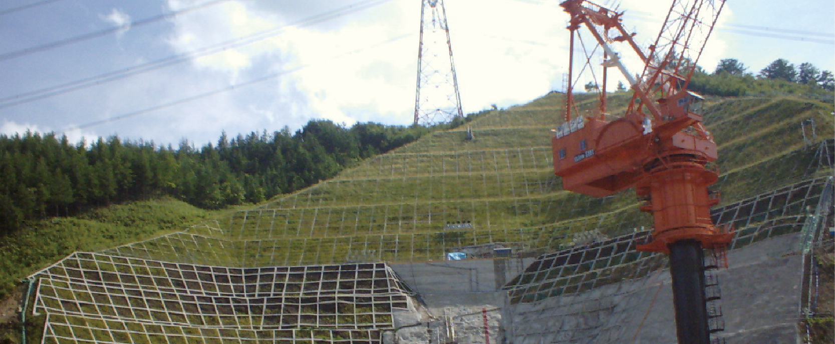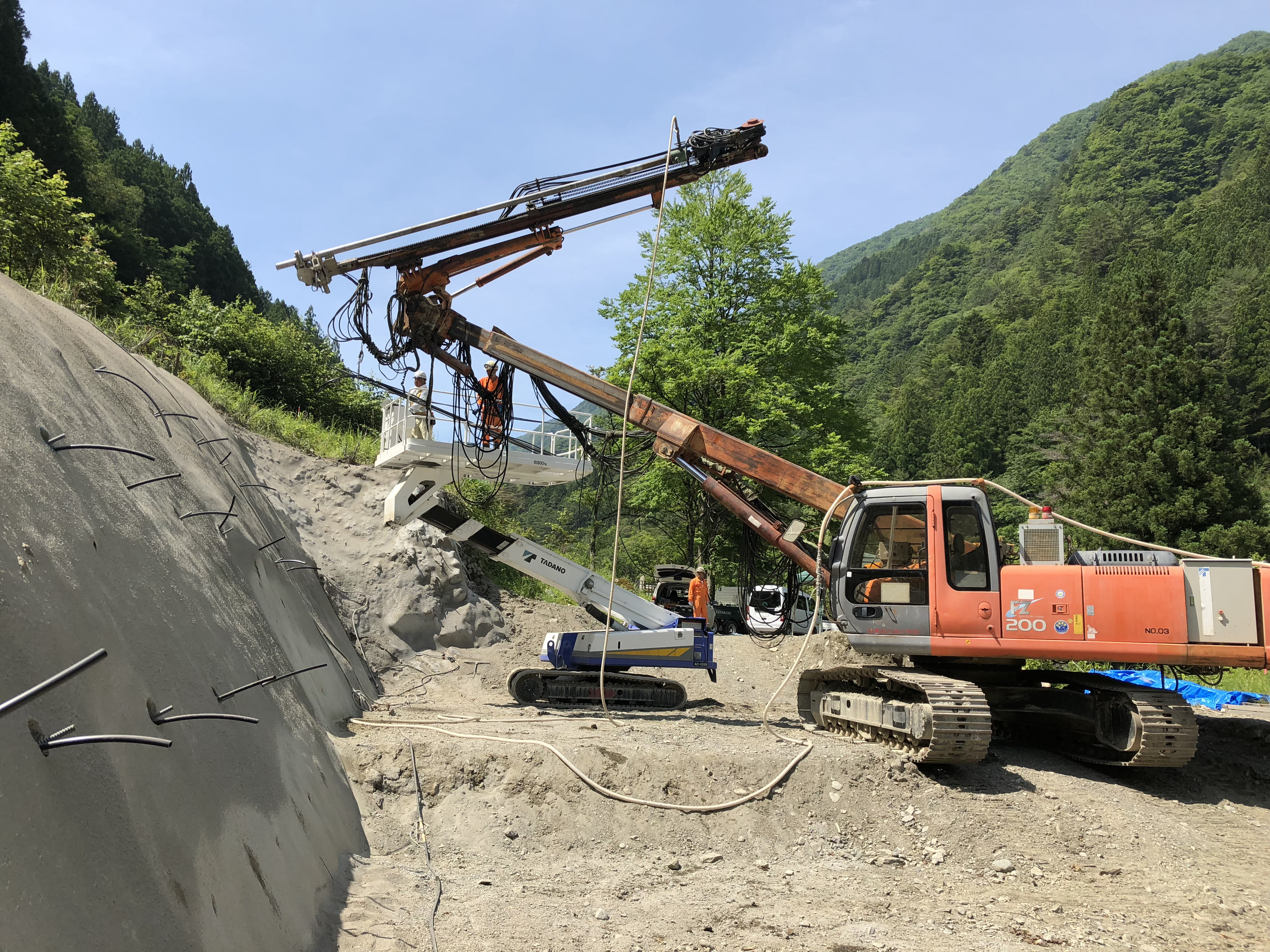 弊社の高所法面掘削掘削機=「フライングゲットFG-10」によって自社施工を行う。